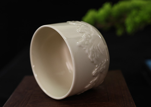 此大宋定窯主人杯杯名“山居”,即以精工雕刻之山居景色,呈現(xiàn)栩栩如生的浮雕效果。胎釉取材于古定窯遺址保護(hù)區(qū)范圍內(nèi),以傳統(tǒng)工藝與現(xiàn)代審美的融合,彰顯原礦胎釉的古風(fēng)之美。